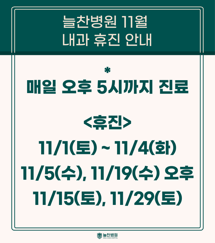 <늘찬병원 11월 토요일 진료 의료진 안내>