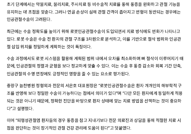 퇴행성 관절염 치료, 정밀도 높인 외과 ‘로봇인공관절수술’