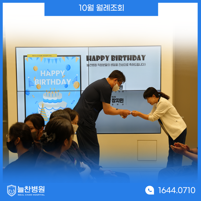 다음으로는 서은호 대표원장님이 직접 10월 생일자를 축하해 주시며 소정의 선물을 전달해 주셨습니다.